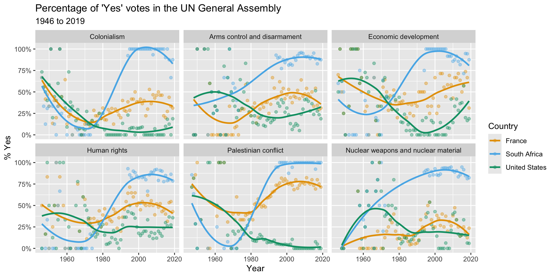title = "Percentage of 'Yes' votes in the UN General Assembly",